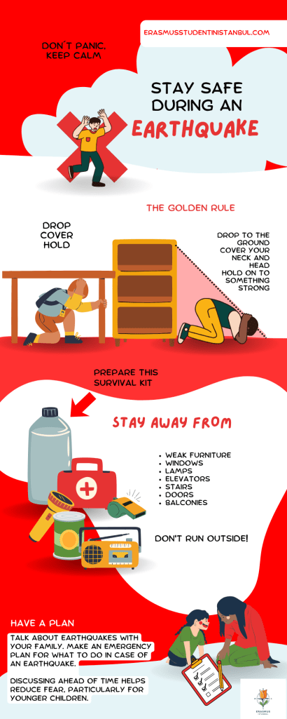 Turkiye has a very interesting geographical location. It is mostly located on the Anatolian plate, and surrounded by four other plates. Therefore it is not unusual to feel an earthquake in Turkiye. My experience with an earthquake was in Istanbul was in the classroom. The building was shaking for quite some seconds. Most of the earthquakes are not dangerous. Most important is, preparing for an earthquake